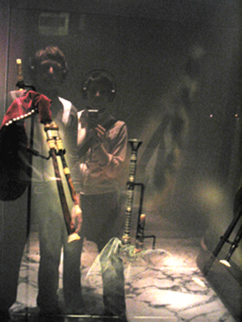 Gründung bei ihrem instruierenden Besuch in einem Musikinstrumente-Museum,