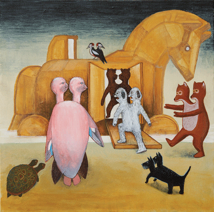 zentrales element der charts-songs sind aber auch diesmal wieder die tasteninstrumente - mal in form eines luftigen pianos, mal als nervös wimmernde orgel. um diesen fixpunkt herum basteln die hamburger eine ebenso wundersame wie schiefe mixtur aus diskurs-pop, chanson und punk-attitüde. fast wirkt das manchmal wie eine deutschsprachige version der dresden dolls mit von film, kunst und theater beeinflussten texten. kryptische zeilen wie „da wo die wege schräger gehen, ist da, wo die welt noch bunter klingt“ („noch ein satz mit ich“) reihen sich da an große weisheiten wie „in der noch so kleinsten hölle kann man einen anderen armen teufel sehen, der denkt, dass es dumm ist und zu groß, um es zu überstehen“ („warmer see“) und grandiose parolen wie „ich verdien´ an deinem schmerz, aber hier kann er nicht bleiben“ („im staub“).